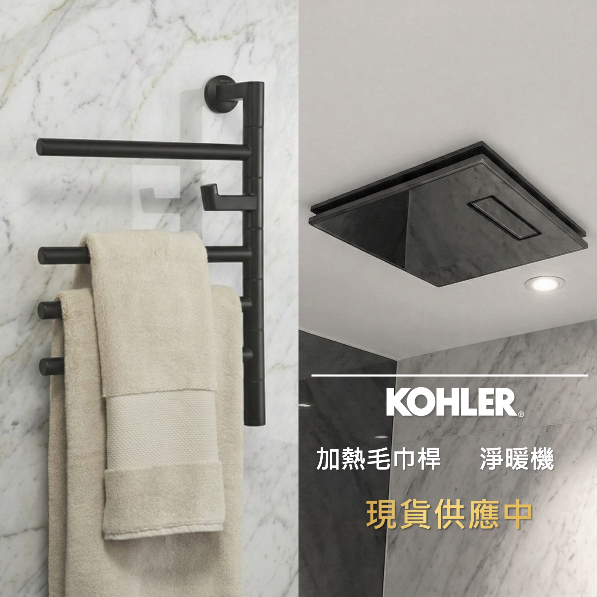 年度熱銷的美型玻璃鏡面KOHLER「淨暖機」,以及近年需求直線上升的「加熱毛巾桿」,不僅提供溫暖的浴室環境,更打造「乾爽健康」的除濕環境。