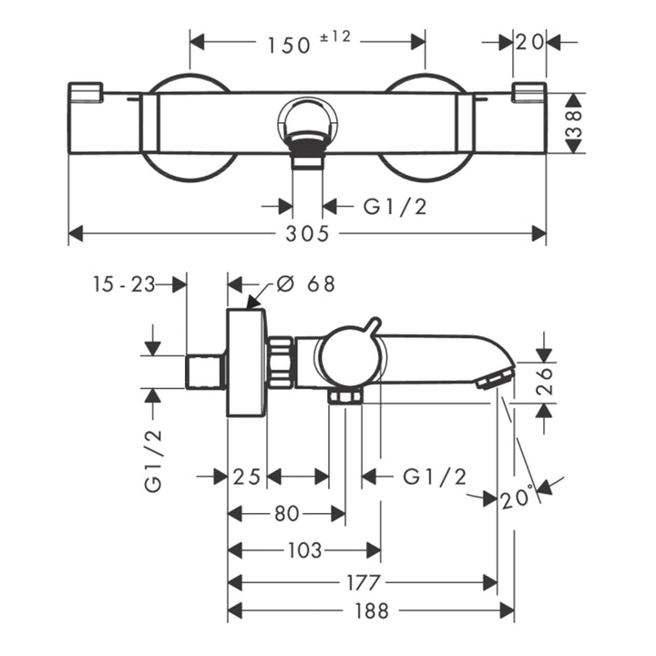 (2) 13114340 附牆定溫浴缸龍頭(霧黑鉻)