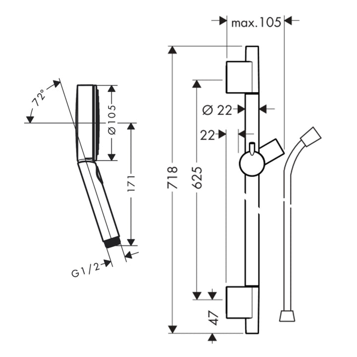 (3) 24602340 淋浴花灑(霧黑鉻)+升降桿65cm&蛇管(霧黑鉻)