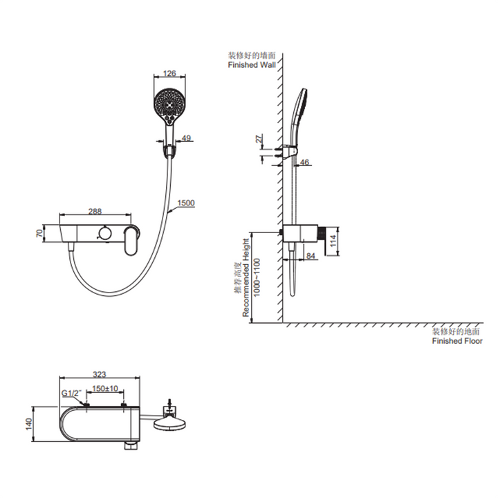 FLUENCE 附牆浴缸花灑龍頭 (霧黑),雙出水