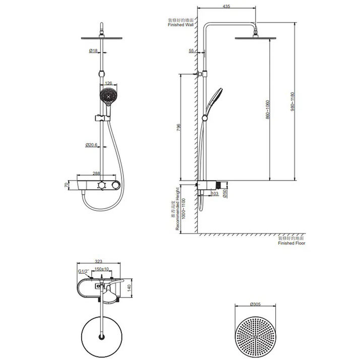 FLUENCE 三出水恆溫淋浴柱(霧黑)