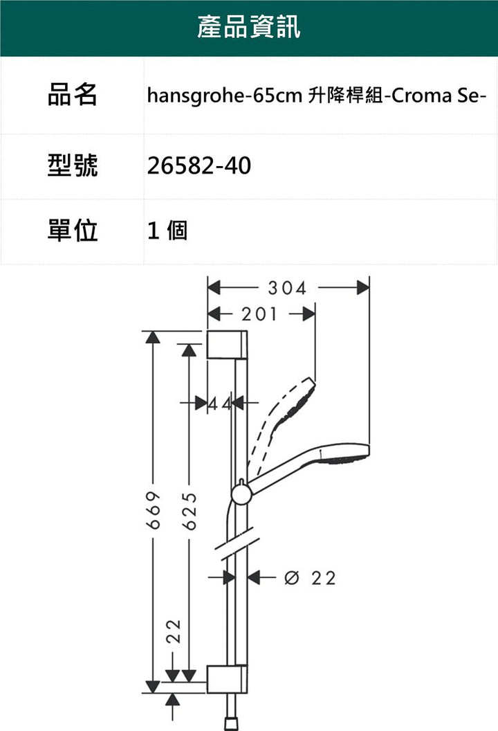 進階三段式蓮蓬頭+65cm升降桿組-Croma Select E,26582-40