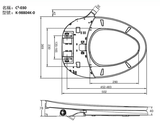 免插電免治馬桶蓋(無熱水) C3-030,K-98804K-0