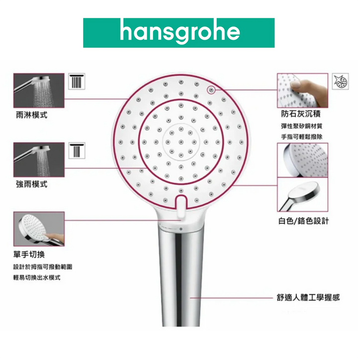 Crometta Vario 花灑+ 65cm升降桿組 (白/鉻),26532-40
